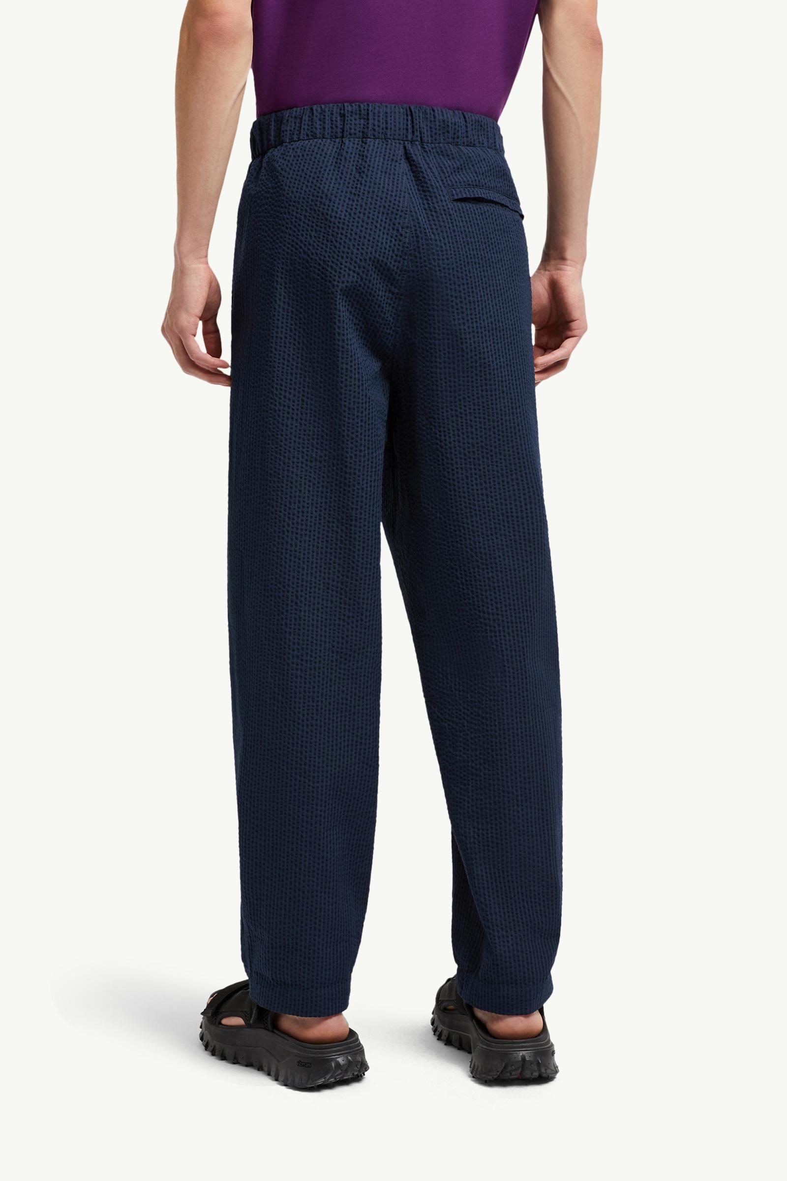 A fair weather design, this pair of trousers is crafted from seersucker. The cotton blend is woven, creating a three-dimensional finish and light feel. The bottoms can be layered under a matching jacket or shirt, resulting in a breezy total look.