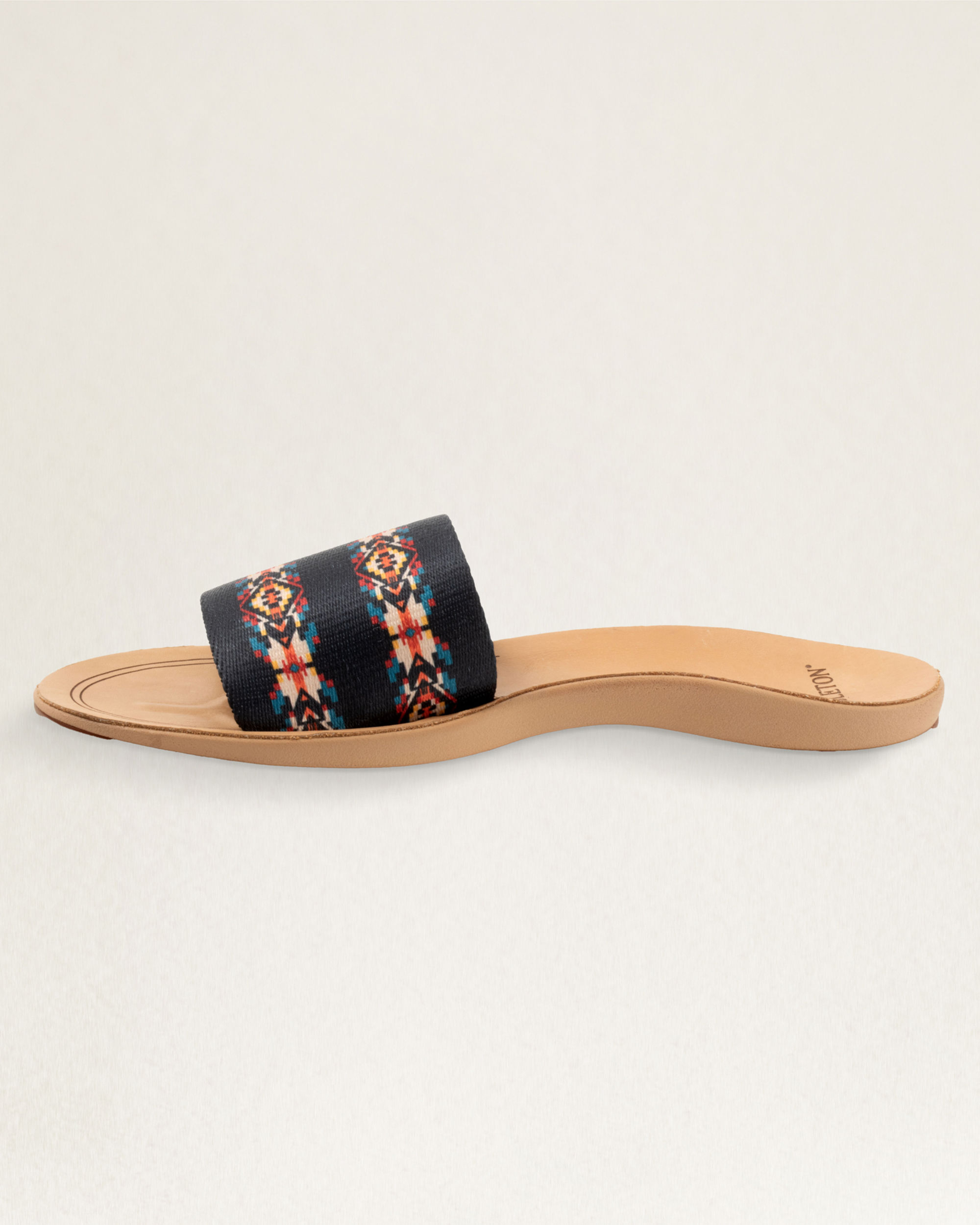 Women's slide sandals built for comfort, with ergonomic arch supports, leather footbeds and slip-resistant rubber soles. Woven nylon straps feature our exclusive Carico Lake pattern.