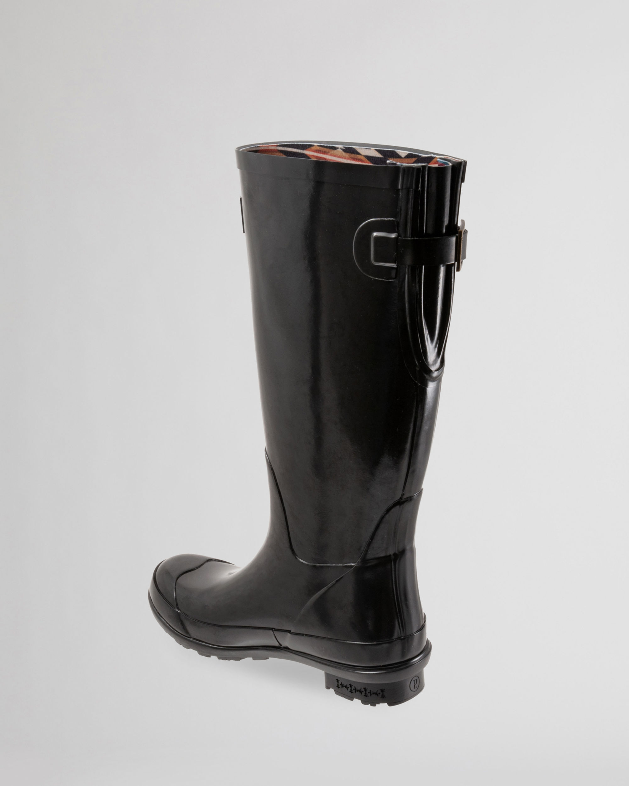 Stylish, waterproof rain boots constructed from premium rubber with a colorful Pendleton print inside. No-slip soles and cushioned insoles provide all-day comfort and support. Adjustable side buckle allows for a wide range of fit options.