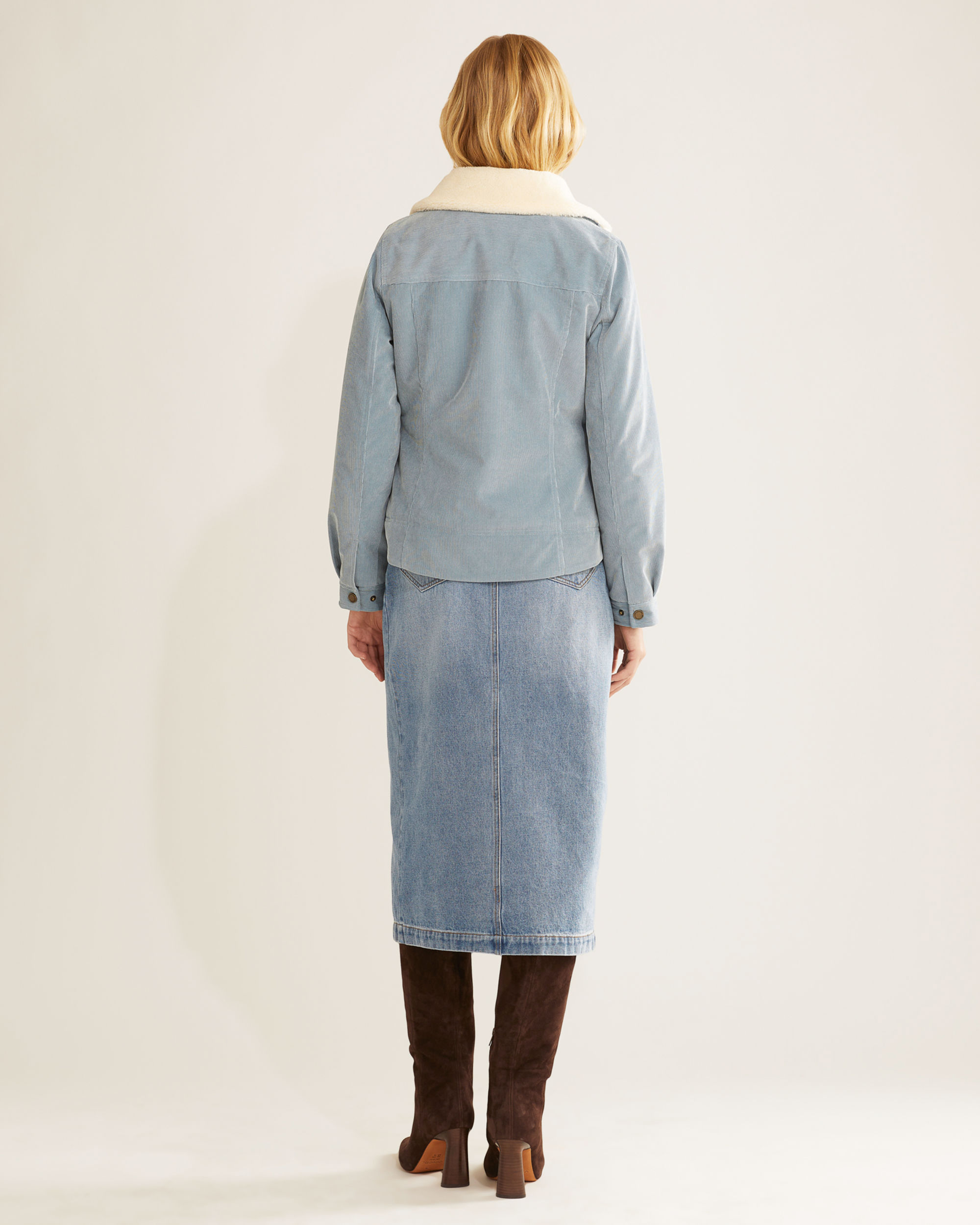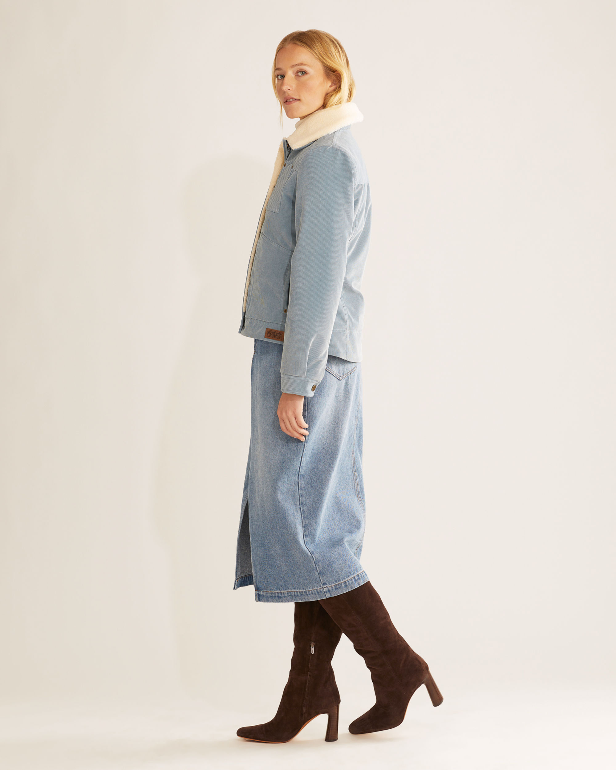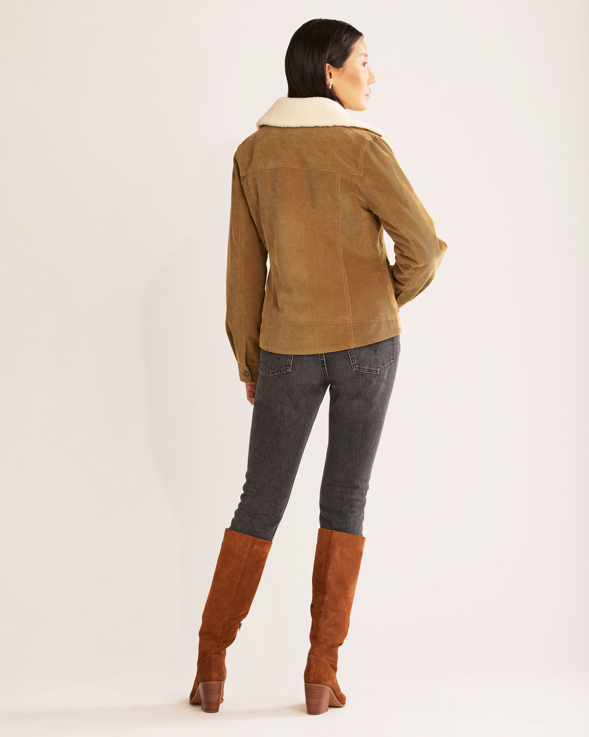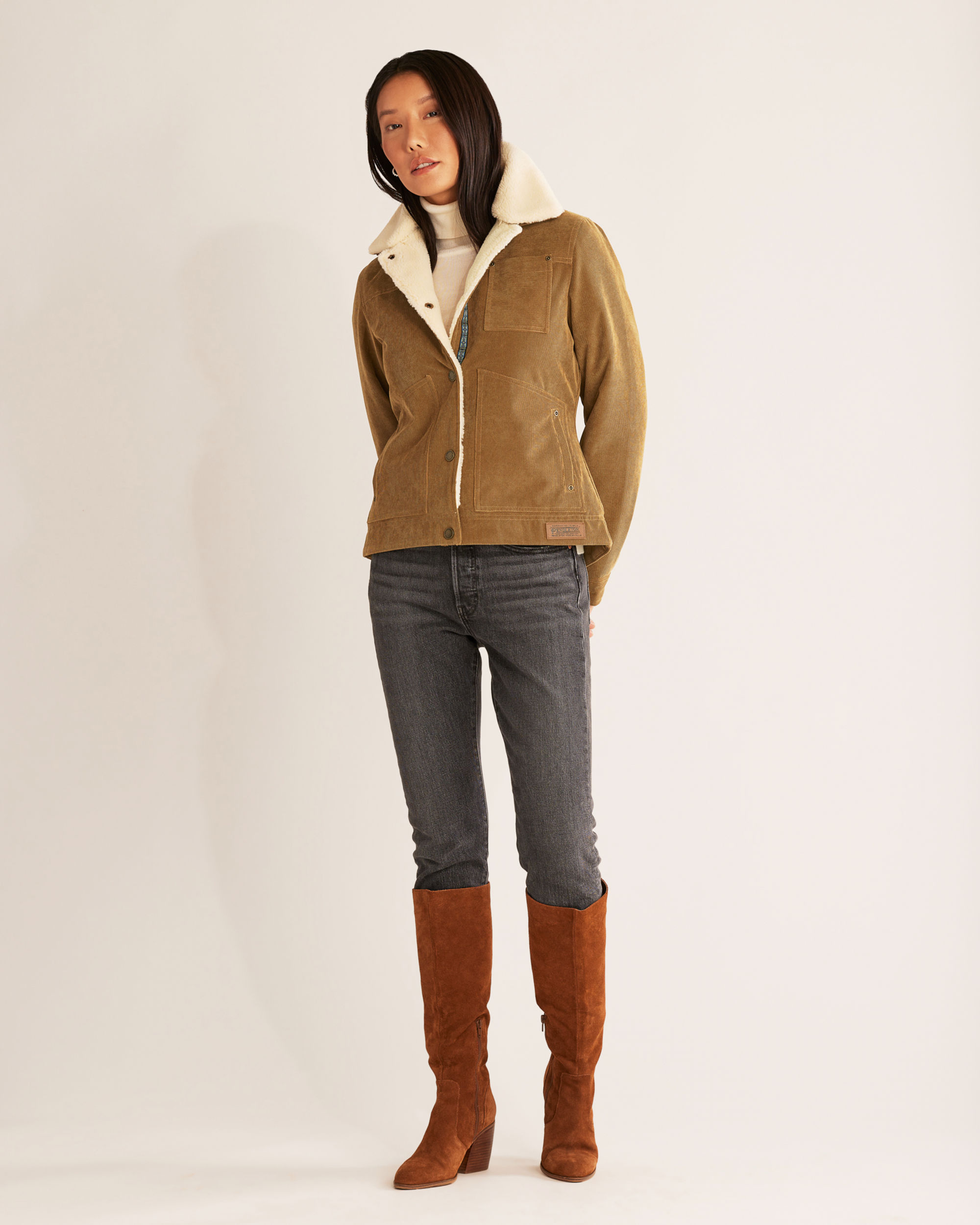 With 16-wale corduroy on the outside and a sherpa lining on the inside, this jacket will keep the chill at bay. It has two front welt pockets and a riveted chest pocket. Collar is detachable.